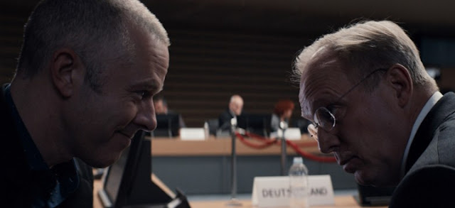 Basado en las memorias del ministro Yanis Varoufakis y narrado desde su punto de vista, el film es tratado como un thriller político, llevado con maestría por Costa-Gavras con sus dosis de un suspenso que no decae, aunque el espectador conozca el resultado final. No hay apellidos en el film, todos se llaman por sus nombres, pero es muy fácil identificarlos: Yanis el ministro, Cristine (Lagarde, la jefa del FMI a quien nuestro entonces presidente Macri declarara su amor), Angela (Merkel, por supuesto, la poderosa ausente), Wolfgang (Schäuble, un duro, ministro de Finanzas de Alemania -excelente Ulrich Tukur).