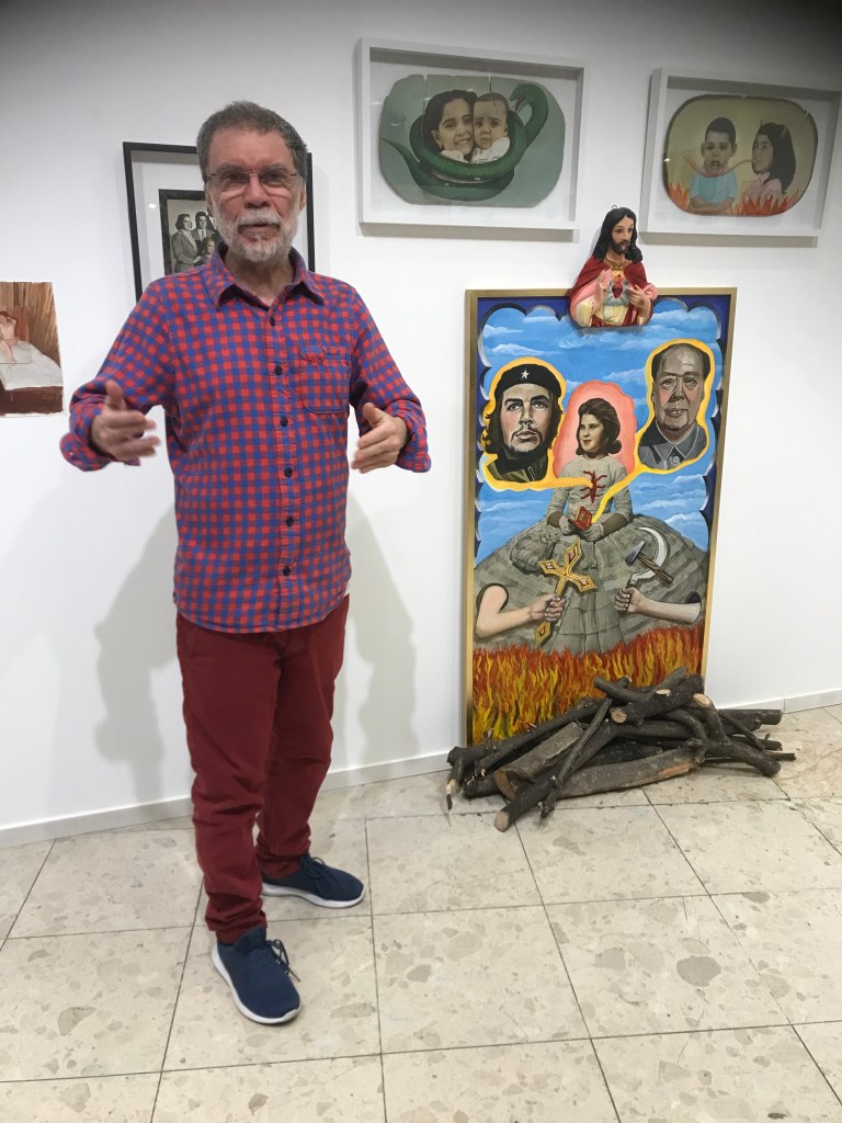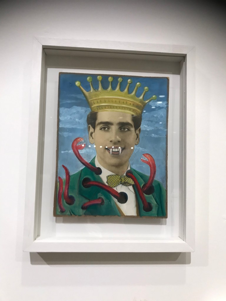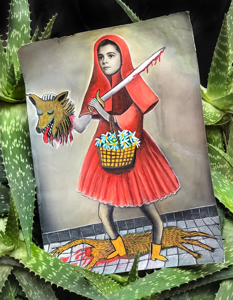 Así, vemos fotografías clásicas de estudio, que despoja de toda solemnidad, retratos de todo tipo a los que agrega largas lenguas verdes, o distintos ropajes, o animales, mutando arbitraria y creativamente el original. Otras que orientan a ilustrar el corona virus, otras a trasmutar los cuentos infantiles, logrando en todas un efecto surrealista. En ellas siempre vemos la obsesión del artista por el pasado, por el ser argentino, por la formación religiosa y sus mandatos. Está preparando un libro que se llamará Patria (“podría llamarse Madre”, dice) en cierta medida autobiográfico.