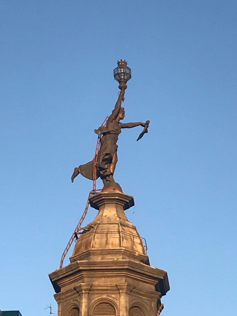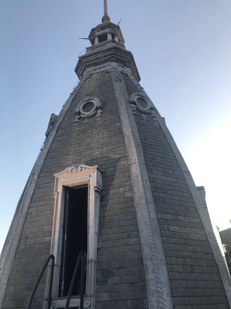 Desde la terraza, junto a la imponente cúpula, la vista es espectacular. Mientras el sol se ponía, una representante de la Ciudad de Buenos Aires nos guio identificando los edificios que podían verse: al Norte, las cúpulas de los edificios Bencich y la del Banco de Boston -hoy ICBC- en calle Diagonal Norte; al Sur la Legislatura porteña y más lejos el edifico Otto Wulff; al lado, la Palas Atenea sobre el edificio La Prensa -hoy Secretaría de Cultura de la Ciudad-; y al Este la espalda del Cabildo, la Plaza de Mayo y muy al fondo, el Río de la Plata. Una experiencia fascinante.