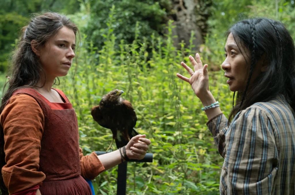 El mundo de la naturaleza y el paisaje siempre residen en el núcleo del cine de Zhao, y en este caso, muy especialmente, ya que la protagonista es una mujer agreste. El verdad, en el pueblo la consideran hija de una bruja del bosque. Compenetrada con el ambiente natural, Anne tiene una íntima conexión con su entorno feraz. Conocedora de los pájaros, las plantas y sus virtudes medicinales, sabe curar a los humanos. Film de época, se priva de recrear ambientes urbanos, casi toda la historia está filmada en el entorno rural, la casa de los padres de Shakespeare donde la familia vivía (allí está Emily Watson como la suegra), y los bosques circundantes. La fotografía de Łukasz Żal (La zona de interés) combina esta visión de naturaleza salvaje -filmada en Gales- con planos cerrados, enmarcados, claustrofóbicos, de los interiores.